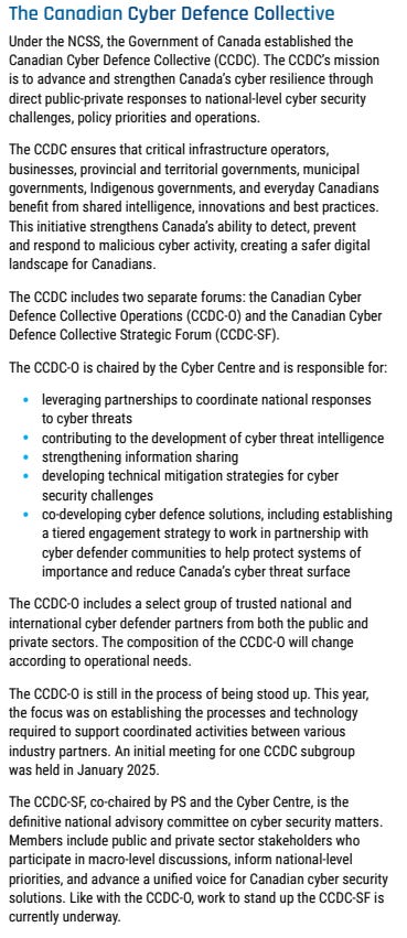 Unfortunately, no. Despite the widespread support for the CCDC, the government has been very quiet about what it is doing with these organizations. It was not until the Communications Security Establishment (CSE) Annual Report in June 2025 that we got some more information. And it was not much.